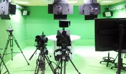 Both stages are provided with cameras, Teleprompter, PTZ cameras, tripods, Chroma Key background and lights in order to get the most correct and best colour image.
